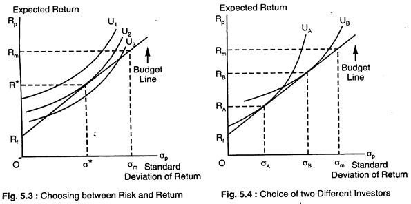 Suppose a person has to invest his savings in two assets — riskless Treasury Bills, and a risky representative group of stocks. He has to decide how much of his savings to invest in each of these two assets. This is analogous to the consumer’s problem of allocating a budget between two goods x and y.