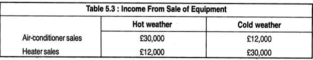 Table 5.3 gives the earnings you can make selling air-conditioners and heaters: