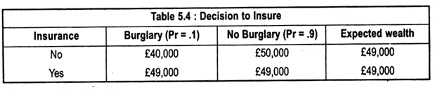 Table 5.4 shows his wealth with two possibilities — to insure or not to insure: