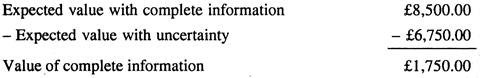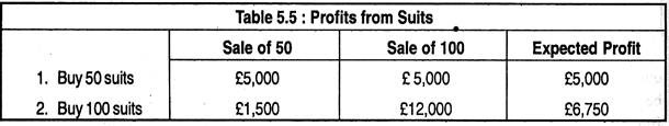 With complete information, you can make the correct suit order, whatever the sales might be. If sales were going to be 50 suits and you order for 50, you make a profit of £5,000. On the other hand, if sales were going to be 100 and you order for 100, you make a profit of £12,000. Since both outcomes are equally likely, your expected profit with complete information would be £8,500.