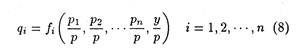 qi = fi (p1,p2,. . . ,pn,y), i = 1,2,. . . n (7)