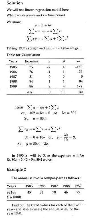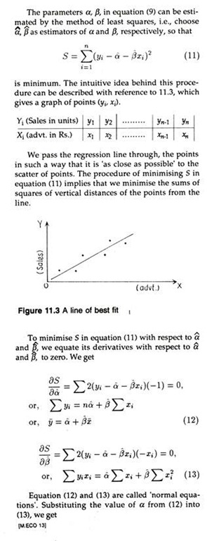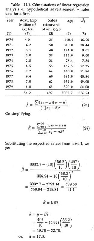 But, this is not the only form of demand function. There can be other forms of demand functions. In the following section we have given an example of how to work out the regression estimates α and β and draw the estimated relation in the case of a linear relation between sales (thousands of units) and advertisement expenditure (million of Rs.).