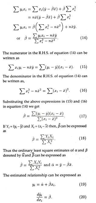 If a number of past observations of the independent and dependent variables are available, these observations can be processed statistically to obtain estimates of the co-efficient. The estimated coefficient bi, then is taken to represent the influences of price on quantity demanded, other factors being held constant.