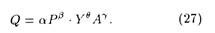 log Q = log α + β log P + θ log Y + 7 log A. (28)