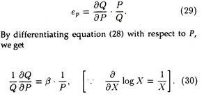 The marginal impact on the quantity demanded due to change in price will be different for different levels of income (Y) and advertisement expenditure (A). The multiplicative model described by (27) is in fact more realistic than linear functions, where the marginal impact of the independent variables are constant.
