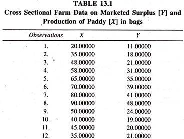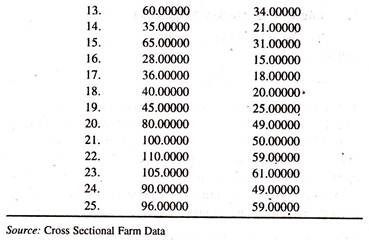 The cross sectional farm data given in Table 13.1 are considered for estimating the linear marketed surplus function.