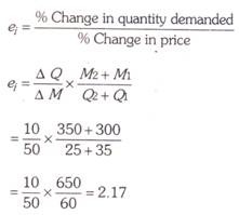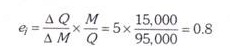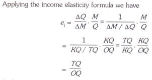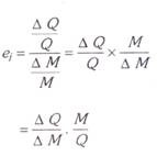 Income elasticity (ei) = ∆ Q / ∆ M. M/Q