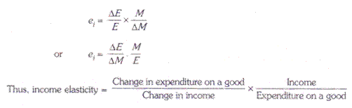 Suppose the whole of the increase in income (∆M) is spent on the good X, then change in expenditure (∆E) on the good X would be equal to ∆M, price of good X remaining the same. Substituting ∆ M for ∆ E in the above measure of income elasticity, we get