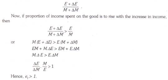 We, therefore, conclude that if proportion of income spent on the good increases as income increases, income elasticity is greater than one.