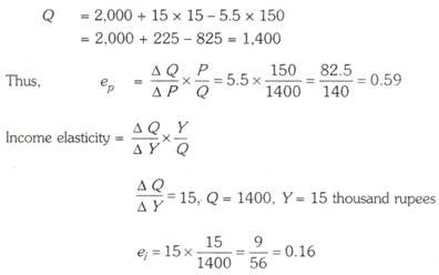 Where Y is income in thousands of rupees, Q is the quantity demanded in units and P is the price per unit.