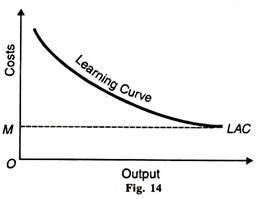 “Learning by doing” has been observed when firms start producing new products. After they have produced the first unit, they are able to reduce the time required for production and thus reduce their per unit cost. Figure 14 shows a learning curve LAC which relates the cost of producing a given output to the total output over the entire time period.