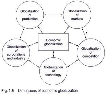 The rapid growth in integration and interdependence of economies can be explained by the interconnectedness of the various dimensions of economic globalization, as depicted in Fig. 1.5, such as the globalization of production, markets, competition, technology, and corporations and industries.