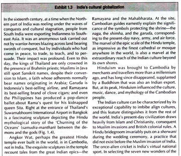 The convergence of cultures across the world may be termed as cultural globalization. India’s rich cultural heritage has a glorious history of globalization (Exhibit 1.3), which is evident even today by its profound impact on people and their lives. Globalization has led to the development of global pop culture.