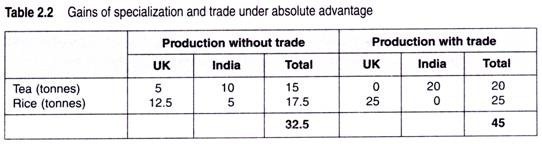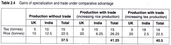 Although the UK does not have an absolute advantage in any of these commodities it has comparative advantage in the production of rice as it can produce rice more efficiently. Countries also gain from trade by employing their resources for the production of goods in which they are relatively more efficient.