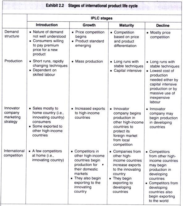 The IPLC has four distinct (Exhibit 2.2) identifiable stages that influence demand structure, production, marketing strategy, and international competition as follows.
