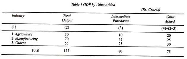 Another method of measuring national income is the value added by industries. The difference between the value of material outputs and inputs at each stage of production is the value added. If all such differences are added up for all industries in the economy, we arrive at the gross domestic product.