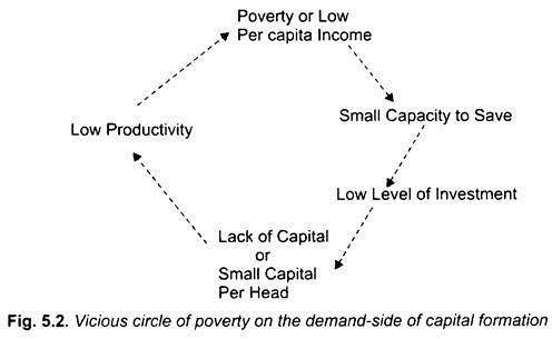 Most widely propagated explanation why poor underdeveloped countries have failed to grow economically is that they are trapped in vicious circles of poverty. These vicious circles of poverty operate both on the supply and demand sides of capital formation. Supply side of capital formation refers to saving required to accelerate capital formation in order to raise productivity and per capita income.