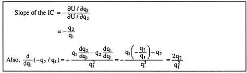 Where U is the ordinal utility number, and q1 and q2 are quantities of the two goods, Q1 and Q2, that the consumer purchases. It is assumed here that the first-order and second-order partial derivatives of U w.r.t. q1 and q2 exist.