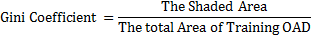 A conventional summary measure of inequality based on Lorenz curve is the Gini Coefficient named after the Italian economist who first suggested it in 1912. Gini Coefficient in Fig. 65.1 is given by the ratio of shaded area (representing the actual deviation of observed income distribution from the line of perfect equality) to the area of triangle OAD. Thus in 65.1, Gini Coefficient is given by the ratio of shaded area B to the total area of triangle OAD. Thus-