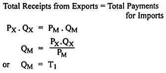 According to Jacob Viner, the income terms of trade reflect the ‘capacity to import’ of a country. If PX, PM, QM and QX represent the absolute magnitudes of price of export, price of import, quantity imported and quantity exported respectively, the equality between total receipts from exports and total payments due to imports can be expressed as below: