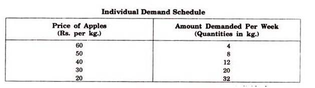 This table illustrates a purely imaginary demand schedule of an individual consumer Mr. X for apples.