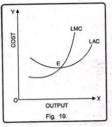 In Figure 19 when LAC is falling, LMC also falls but the fall in LMC is greater than that of LAC. At a minimum point i.e. E, LMC is equal to LAC. In the same fashion when LAC raises LMC also rises. But the increase in LMC is more than the increase in LAC.