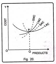 In Fig. 20, OQ is the optimum level of output SMC = LMC. If output is less than the optimum level OQ, then SMC will be less while LMC will be relatively more. On the other hand, if output is more than the optimum level, SMC will be more while LMC will be relatively less.