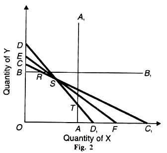 At D, we have (Rs 2) (4) + (Rs 6) (0) = Rs 8…….. (5)