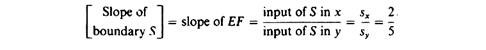 Boundary set by the factor ‘land”. The boundary of the factor ‘land’ (S) is determined in the same way as the previous two boundaries. It is a straight line (EF in figure 20.4) whose slope is the ratio of the land inputs in the production of the two commodities