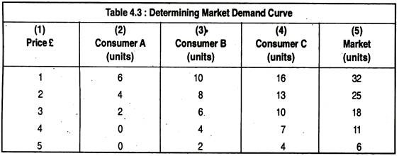 For example, when the price is £4, the quantity demanded by the market (11 units) is the sum of the quantity demanded by A (no units), by B (4 units) and by C (7 units). Because all the individual demand curves slope downward, the market demand curve will also slope downward.