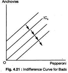A good is a neutral good if the consumer does not care about it one way or the other. Suppose the consumer is neutral about anchovies. In this case, indifference curves will be vertical lines as given in Fig. 4.22.