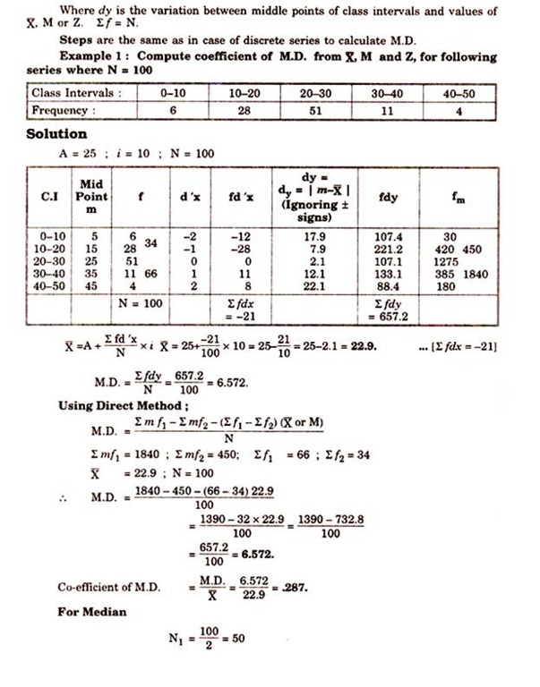Whenever asked to find x and M.D. from x i It is useful to use direct method to find X as well as mean deviation. As in Exp. 4 ; we get X = ∑fm/N = 2290/100 = 22.9. We need not go through columns dx, fdx, dy and fdy in this question.