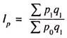 where p1 and p0 tefer to current prices and the base period prices, respectively, and q0 refers to the base period market basket of goods.