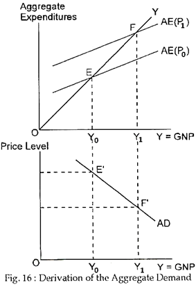 In his theory of income determination Keynes has shown how at any price level aggregate demand — and equilibrium output — is determined. By using the same analysis, it is possible to derive the aggregate demand curve simply by asking: what happens to aggregate demand — and equilibrium output — when the price level changes?