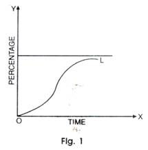 The spread of innovation can be explained with the help of a figure. 1 where percentage of firm is taken along Y-axis and time is along X-axis. The curve OL represents that firms adopt an innovation slowly to start but soon the adoption of innovation gains momentum but it never reaches 100 percent adoption by firms.