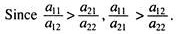 where a11, a12-etc., are input coefficients of the Leontief type. Optimum production of the two goods and the maximum income occur at point E. The slope of the labour constraint is and the slope of the capital constraint is – a21/a22