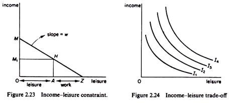 The line MZ is the income-leisure curve, which shows how much time of his leisure an individual must give up if he wants to earn a certain income.