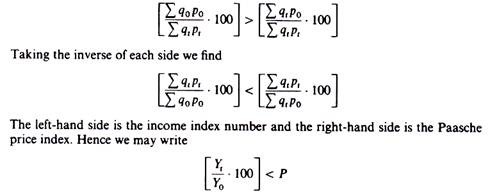 The left-hand side of this inequality is the Laspeyres price index, while the right-hand side is the income index number ∑ qtpt, being the current income and ∑ q0p0 being the income of the base period). Thus we may write