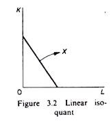This type assumes perfect substitutability of factors of production: a given commodity may be produced by using only capital, or only labour, or by an infinite combination of K and L (figure 3.2).