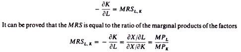 The slope of the isoquant decreases (in absolute terms) as we move downwards along the isoquant, showing the increasing difficulty in substituting K for L. The slope of the isoquant is called the rate of technical substitution, or the marginal rate of substitution (MRS) of the factors