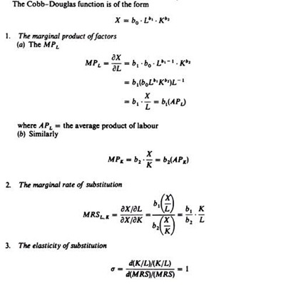 4. Factor intensity. In a Cobb-Douglas function factor intensity is measured by the ratio b1/b2. The higher this ratio the more labour intensive the technique. Similarly the lower the ratio b1/b2 the more capital intensive the technique.